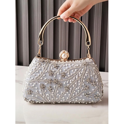 Per donna Clutch Borsa da sera Polsiera Borse a Mano Poliestere Feste Quotidiano Addio al nubilato Strass Perle Catena Grande Capacità Leggero Durevole Tinta unica Blocco di colori Argento Blu chiaro