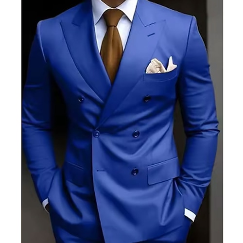 Uomo Matrimonio Affari Abiti da festa Bavero a lancia Blu Formale Tinta unita Vestibilità aderente 2 pezzi Doppiopetto a sei bottoni