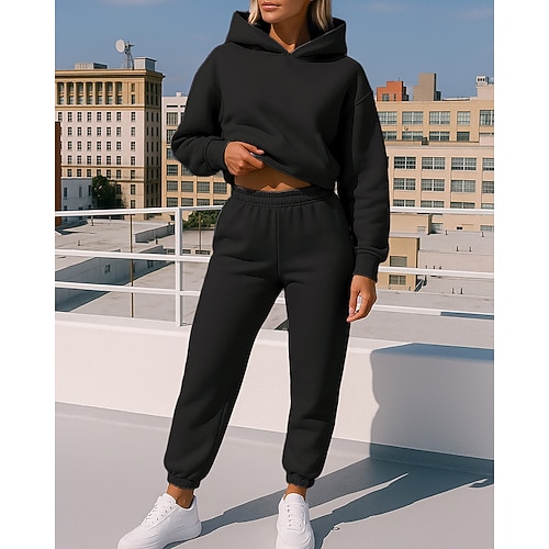 Per donna Tuta da 2 pezzi Felpa con cappuccio Lounge Set di tute da ginnastica Tinta unita Completo Abbigliamento Autunno Nero Bianco Allenamento All'aperto Viaggio Vita Alta Leggero Di tendenza