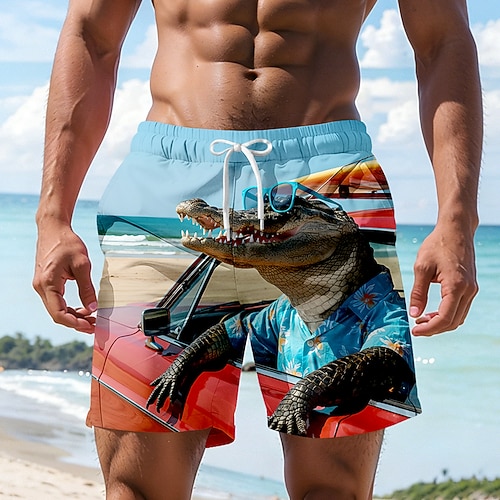 Per uomo Squalo vita marina Costume nuoto a pantaloncino Boxer da surf Pantaloncini da mare Vita normale Festività Hawaiano Vacanze Da mare Per eventi Spiaggia A cordoncino con fodera in rete Vita