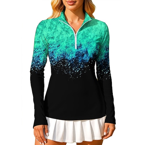 Per donna Sfumatura Marmo Arte astratta Felpa Polo Top Maglietta Maglietta sportiva Manica Lunga Stampato Zip a un quarto Pullover UPF50 Resistente ai Raggi UV Protezione UV Elastico Traspirante