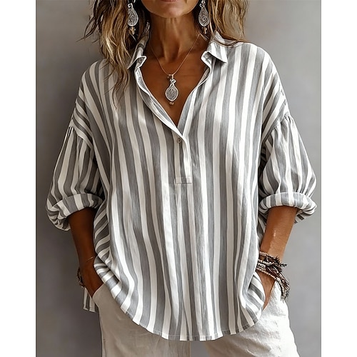 Per donna Camicia Blusa A righe Elegante Manica Lunga Colletto a Camicia Top Regolari Quotidiano Ferie Uscire Patchwork Rosa Verde Cachi Grigio Estate Autunno Inverno