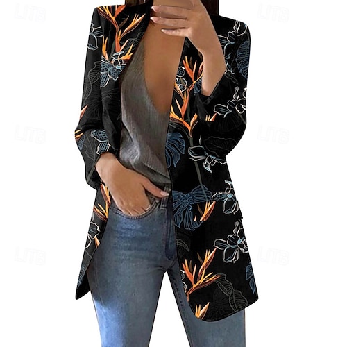 Per donna Blazer Confortevole Stampato Elegante Moda Casual Floreale Uscire Casual Quotidiano Cardigan Regolare Bavero Vestibilità regolare Manica Lunga Capispalla Nero Bianco Rosa Primavera Autunno