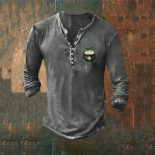 Per uomo Maglietta per il giorno di San Patrizio Maglietta trifoglio di San Patrizio Maglia Henley Maglietta Manica Lunga Henley Primavera Estate Giorno di San Patrizio Moda Festa di San Patrizio