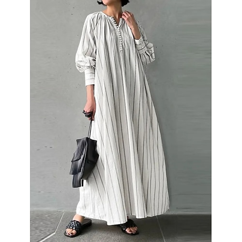 Per donna Abito Lungo Maxi Abito Abiti in cotone e lino Vestito Casual Moda All'aperto Feste Ferie Vestibilità regolare Semplice Senza Maniche Scollo a V Nero Bianco Blu marino Estate