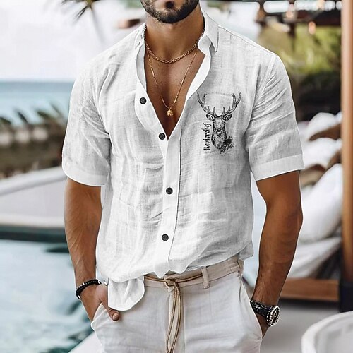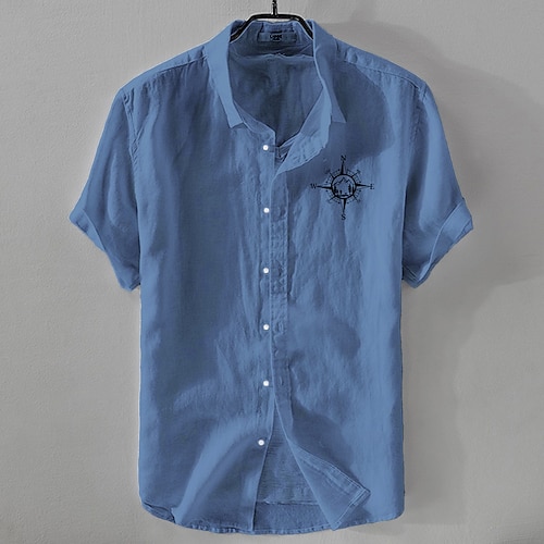 Per uomo Camicia di lino Camicia casual Camicia in cotone e lino Camicia con Bottoni Motivo Vacanza Streetwear Nero Bianco Verde chiaro Rosa Manica Corta Bavero Estate Abbigliamento Bottonato