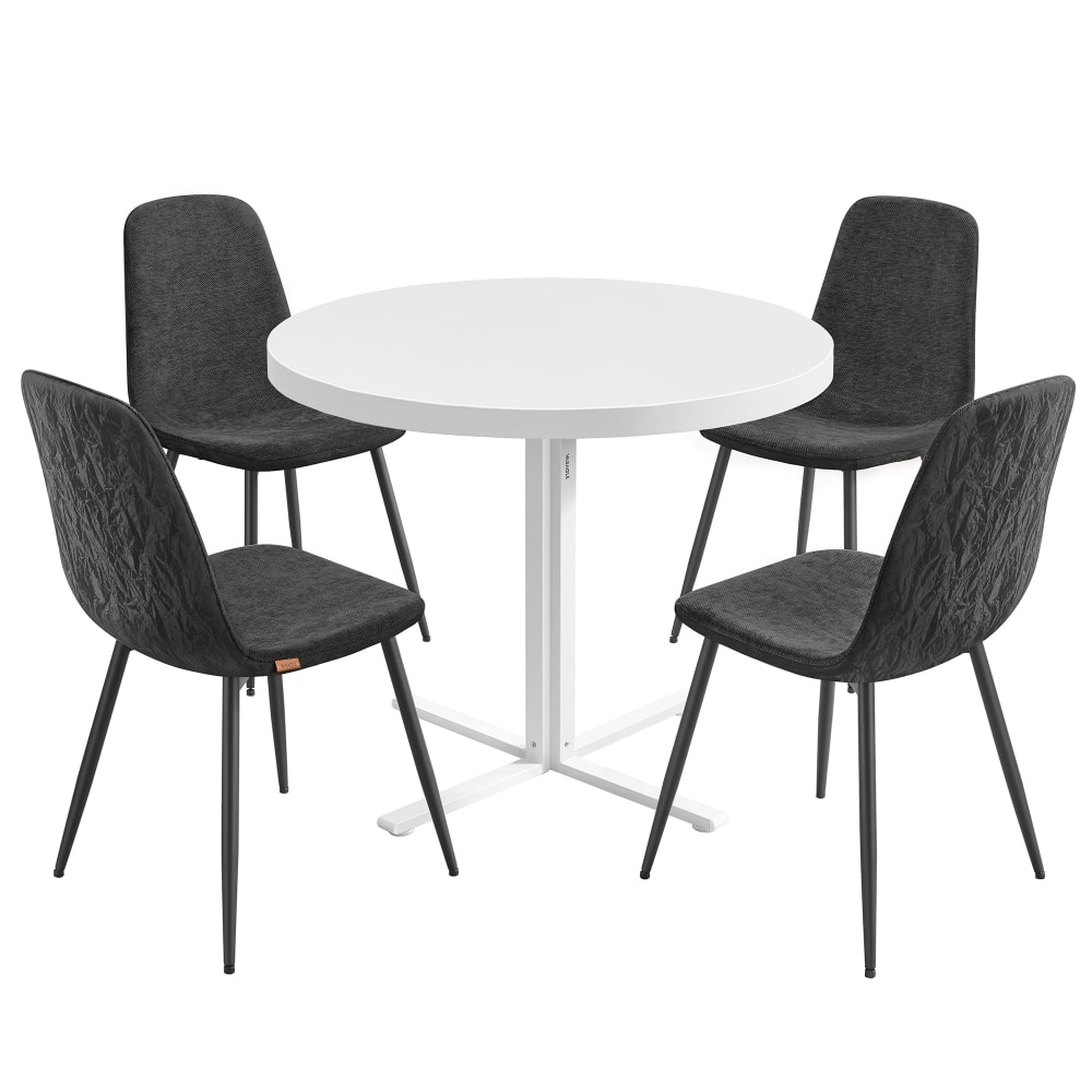 1 table ronde avec 4 chaises de salle à manger blanc et gris