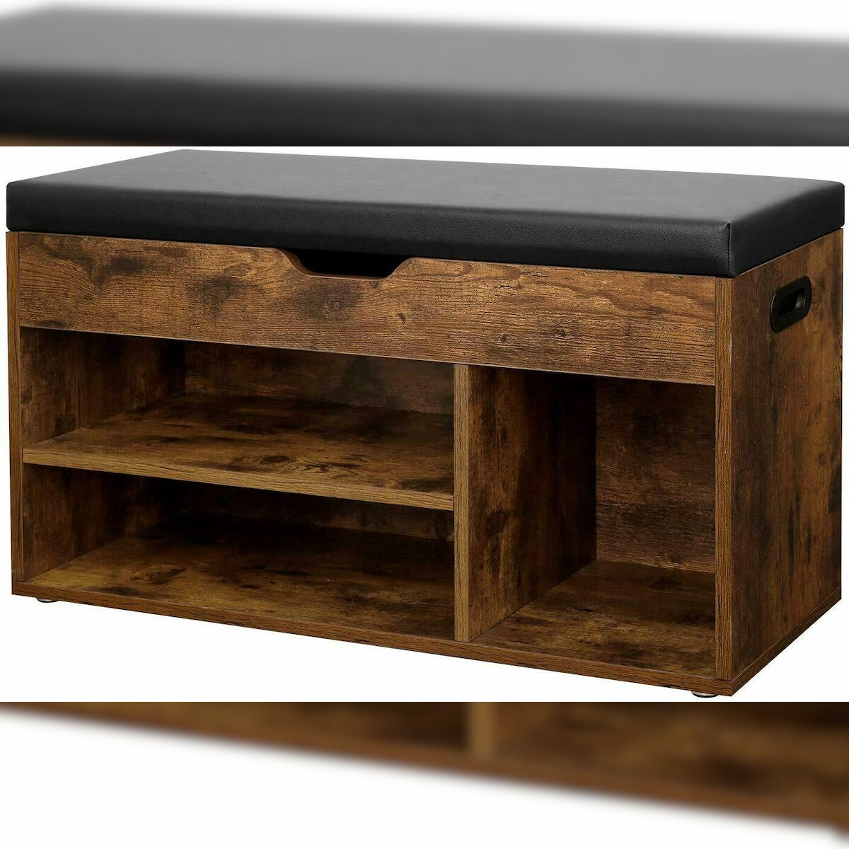 UAC Schuhbank Sitzbank 80 x 30 x 44 cm mit klappdeckel, gepolstert, 3 offene Fächer, Stauraum unter der Sitzfläche, bis 150 kg belastbar, dunkelbraun