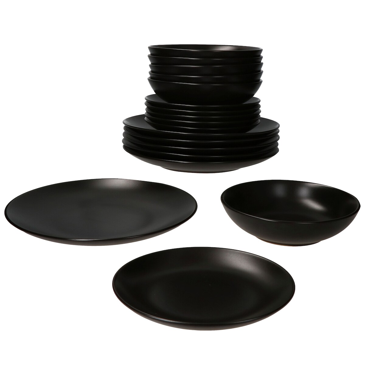 18tlg Tellerset Panther matt schwarz für 6 Personen aus Steingut – AS.18.F.01892