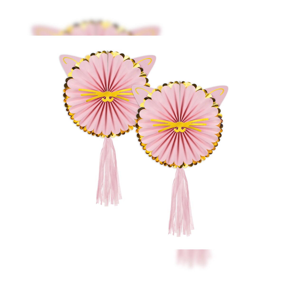 PartyDeco 2 Papier Rosetten 26cm Katzen Deko Papierfächer Papierrosetten Dekofächer Papierdeko Hängedeko Geburtstagsdeko Kinder Kindergeburtstag Tiere Rosa Gold