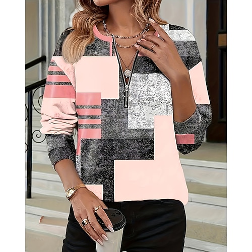 Per donna Felpa Pullover Felpe con cerniera Floreale Geometrico Blocco di colori Moda Streetwear Casual Manica Lunga Girocollo Top Regolari Streetwear Abbigliamento Quotidiano Casuale Con zip Stampato