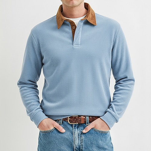 Per uomo Camicia di Velluto a Coste Testurizzato Casuale Sportivo Bavero Manica Lunga Moda Essenziale Blocco di colori Patchwork Bottoni Inverno Primavera Autunno Vestibilità regolare Verde Blu