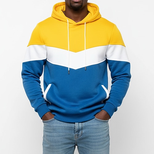 Per uomo Felpa con cappuccio Blu denim Nero Bianco Giallo Vino Con Cappuccio Blocco di colori Blocco di colore Tasca Frontale Casuale Quotidiano Sport Outdoor Streetwear Cool Abbigliamento Sportivo