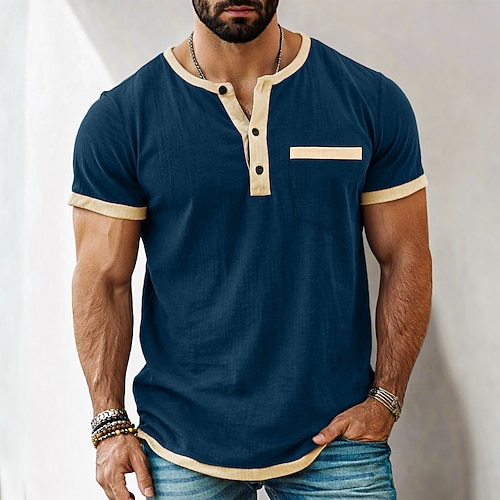 Da uomo Maglietta Maglia Henley Camicia a Maniche Corte Manica Corta Henley Estate Primavera Primavera Estate Blocco di colori Semplice Moda Designer Essenziale Patchwork Vacanza Streetwear Uscire