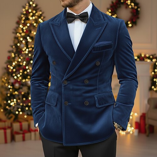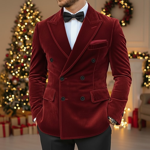 giacca blazer in velluto da uomo con chiusura a colletto, per feste di Natale, casual, tinta unita, rosso, blu, viola, vestibilità su misura, doppiopetto, sei bottoni