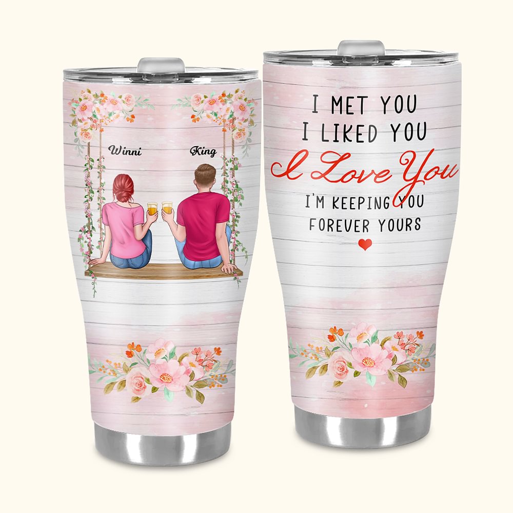 Personalizzato I Met You I Like You I Love You Coppia seduta su altalena floreale Bicchiere curvo con cannuccia Anniversario Regalo di San Valentino p