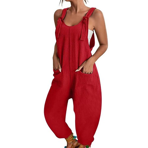 Per donna Normale Tuta Streetwear Tinta unica Senza maniche Squadrata Tasche Strada Giornaliero Standard Nero Vino Verde militare Estate