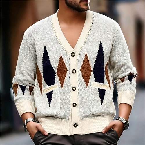 Per uomo Maglioni di Natale Maglione per le feste Cardigan Maglione Corto Maglione a maglia A Coste Maglia Top Regolari Cardigan con Bottoni Tasca Geometrico Scollo a V Moda Classico Vacanza