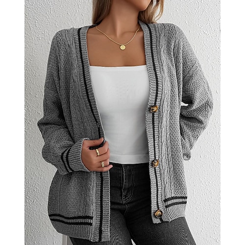 Per donna Felpa Cardigan Streetwear Casual Blocco di colori Scollo a V Bottoni Lavorato a maglia Manica Lunga Top Regolari Maglia Ferie Uscire Weekend Grigio Autunno Inverno