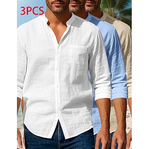 Per uomo Camicia Camicia di lino Camicia in cotone e lino Camicia bianca di cotone Camicia con colletto cinese Camicia con colletto alla coreana Semplice Vacanza Streetwear Bianco Blu reale Grigio