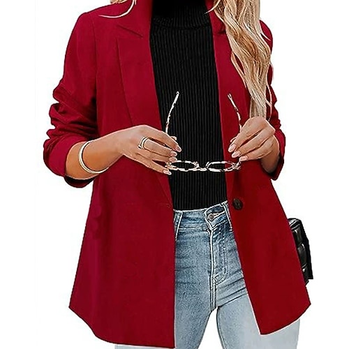 Per donna Blazer Confortevole Bottoni Elegante Moda All'aperto Semplice Uscire Casual Quotidiano Weekend Cardigan Regolare Bavero Vestibilità regolare Manica Lunga Capispalla Nero Rosso Marrone