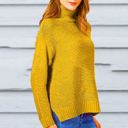 Per donna Felpa Maglione Elegante Streetwear Casual Tinta unica Dolcevita Lavorato a maglia Manica Lunga Top Regolari Maglia All'aperto Quotidiano Ferie Giallo Rosa Autunno Inverno