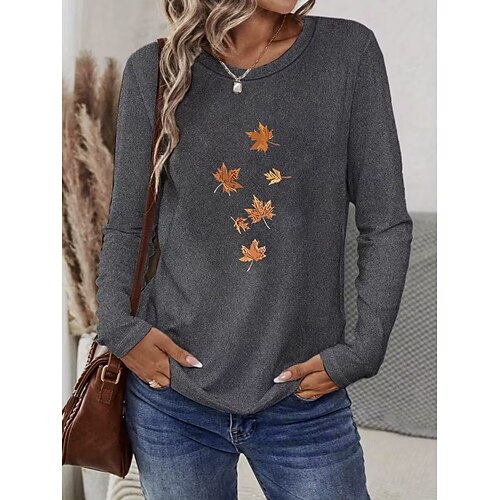Natale Per donna Maglietta Grafico Animale Lettera Vintage Moda Elegante Manica Lunga Girocollo Top Regolari Quotidiano Weekend Stampato Blu Nero Bianco Rosa Verde Primavera Autunno