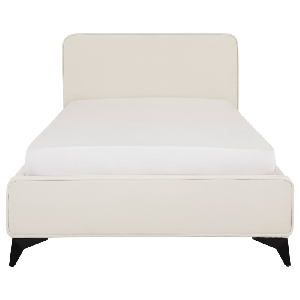 Lit simple en tissu peau de pêche, blanc, avec sommier, 90 x 190 cm