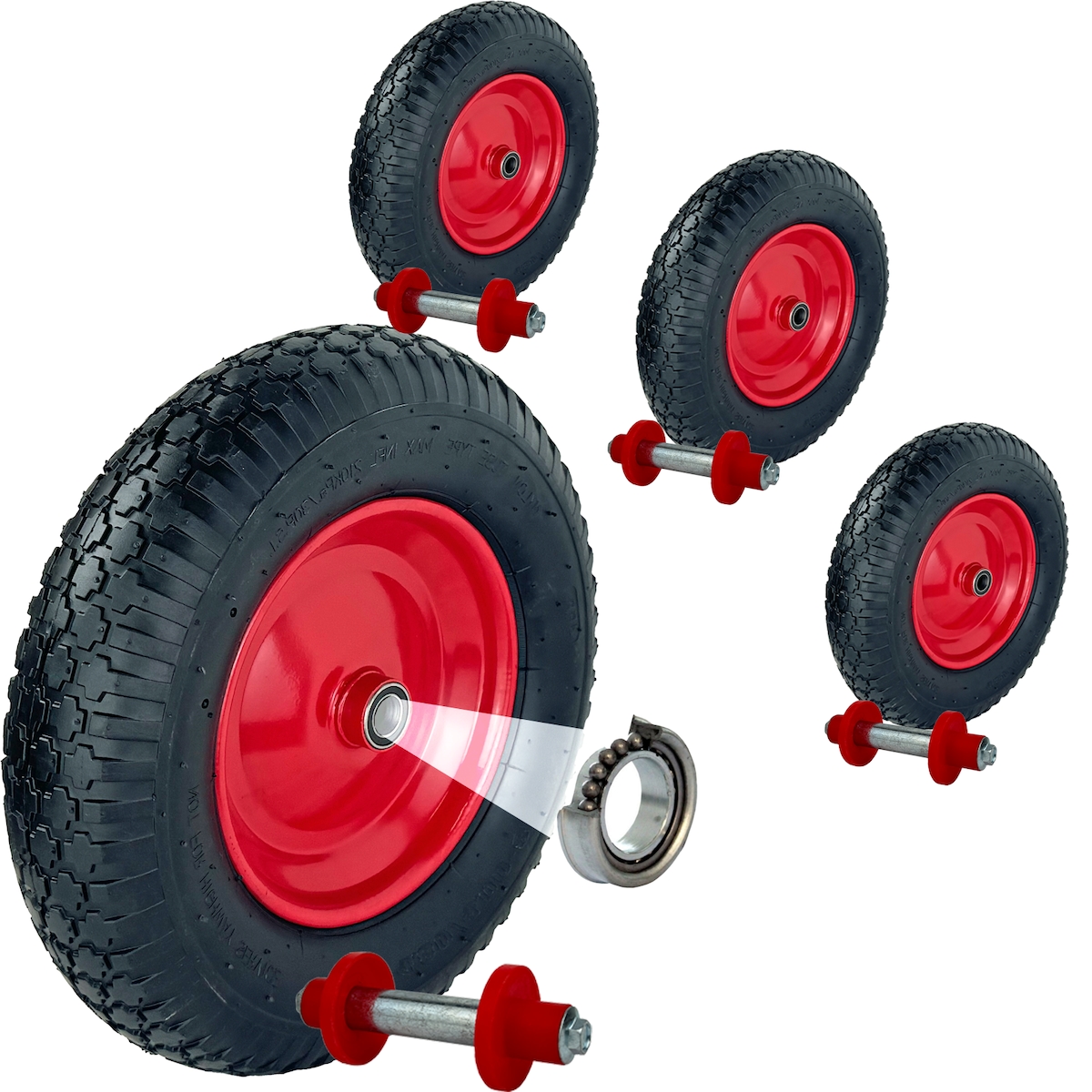 Baumarktplus 4 x Schubkarrenrad 390x95 mm 4.80 4.00-8 luftbereifung inkl. Achse Ersatzrad 4PR Metallfelge 200 kg