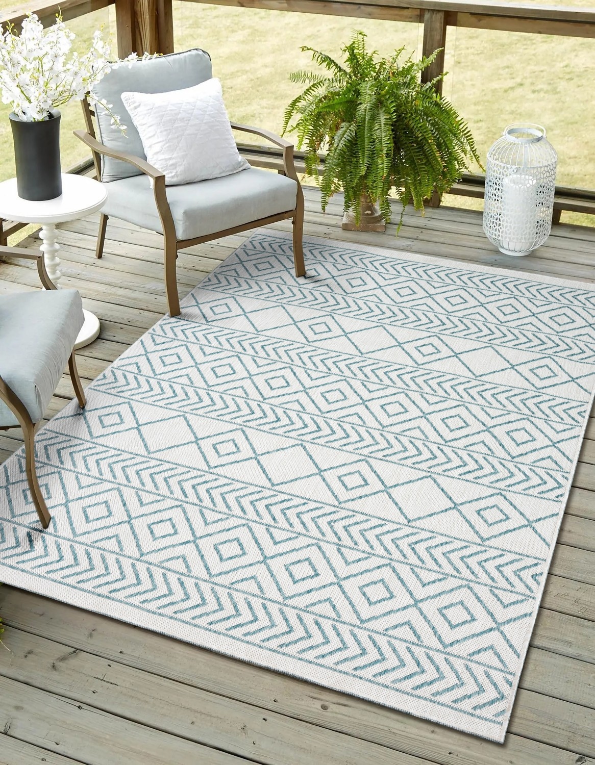 Teppich "Liva Lagerräumung", blau (cream,türkis), B:200cm H:8mm L:300cm, Polypropylen, MYFLAIR MÖBEL & ACCESSOIRES, Teppiche, Wendeteppich, Rauten Motiv, Outdoor geeignet, Balkon, Terrasse