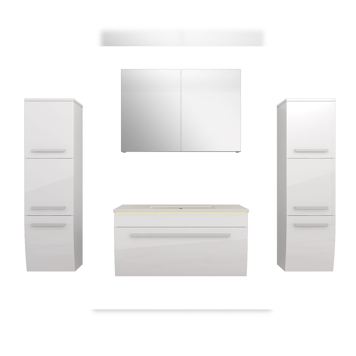 AcquaVapore Badmöbel Set Gently 3 V3 Weiß Badezimmermöbel Badspiegel Waschtisch 80 cm mit 1x 5W LED / Energiebox