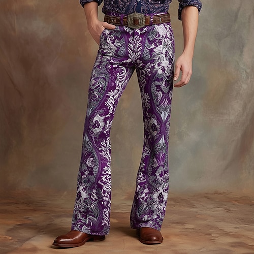 Per uomo Paisley Stampa Floreale Etnico Pantaloni da discoteca Pantaloni a zampa d'elefante anni '60 e '70 Misura del girovita medio Western Vintage Retrò All'aperto Vacanza Casuale Tasche Laterali