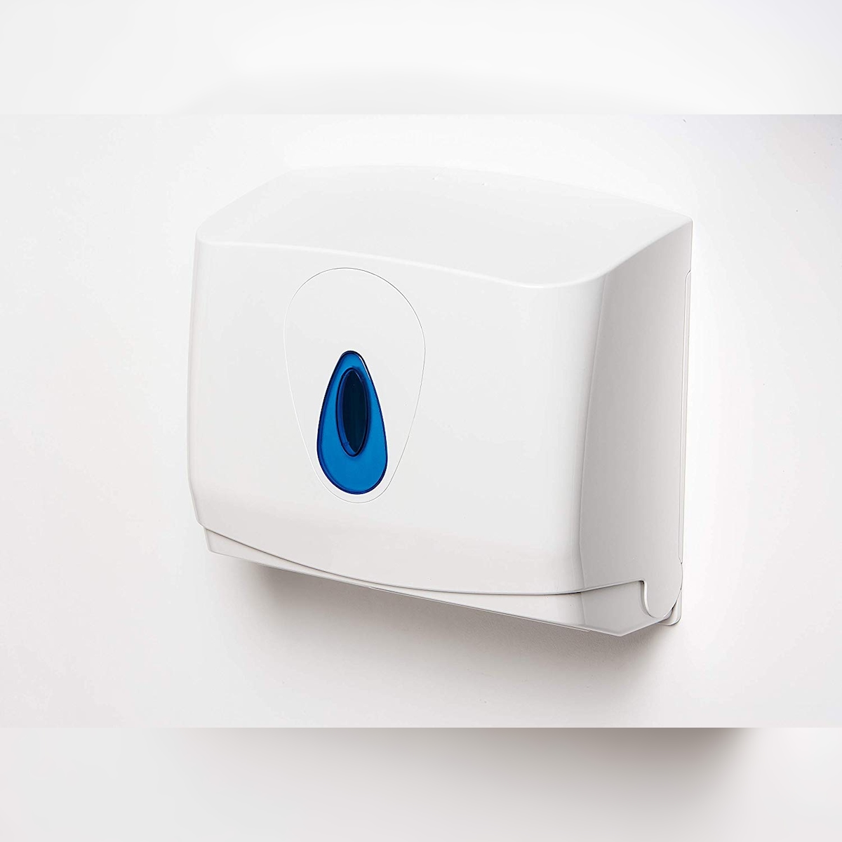 CleanSV Brigmod Weiss mini Papierhandtuchspender aus Kunststoff mit blauem Sichtfenster