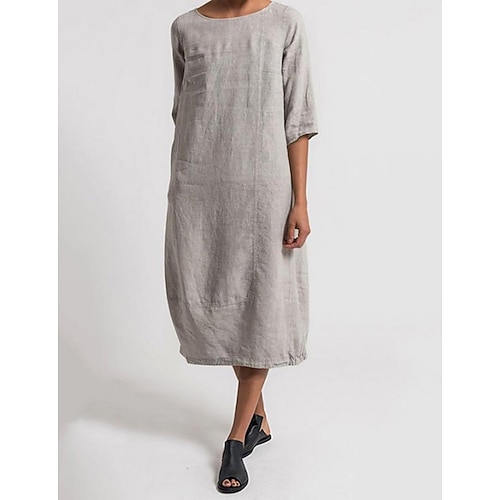 Per donna Abito Midi Vestito Estivo Abito a Tubino Vacanza Casual Boho Quotidiano Spiaggia Ferie Vestibilità comoda Semplice Manica 3/4 Girocollo blu navy Nero Rosso Grigio chiaro Estate Primavera