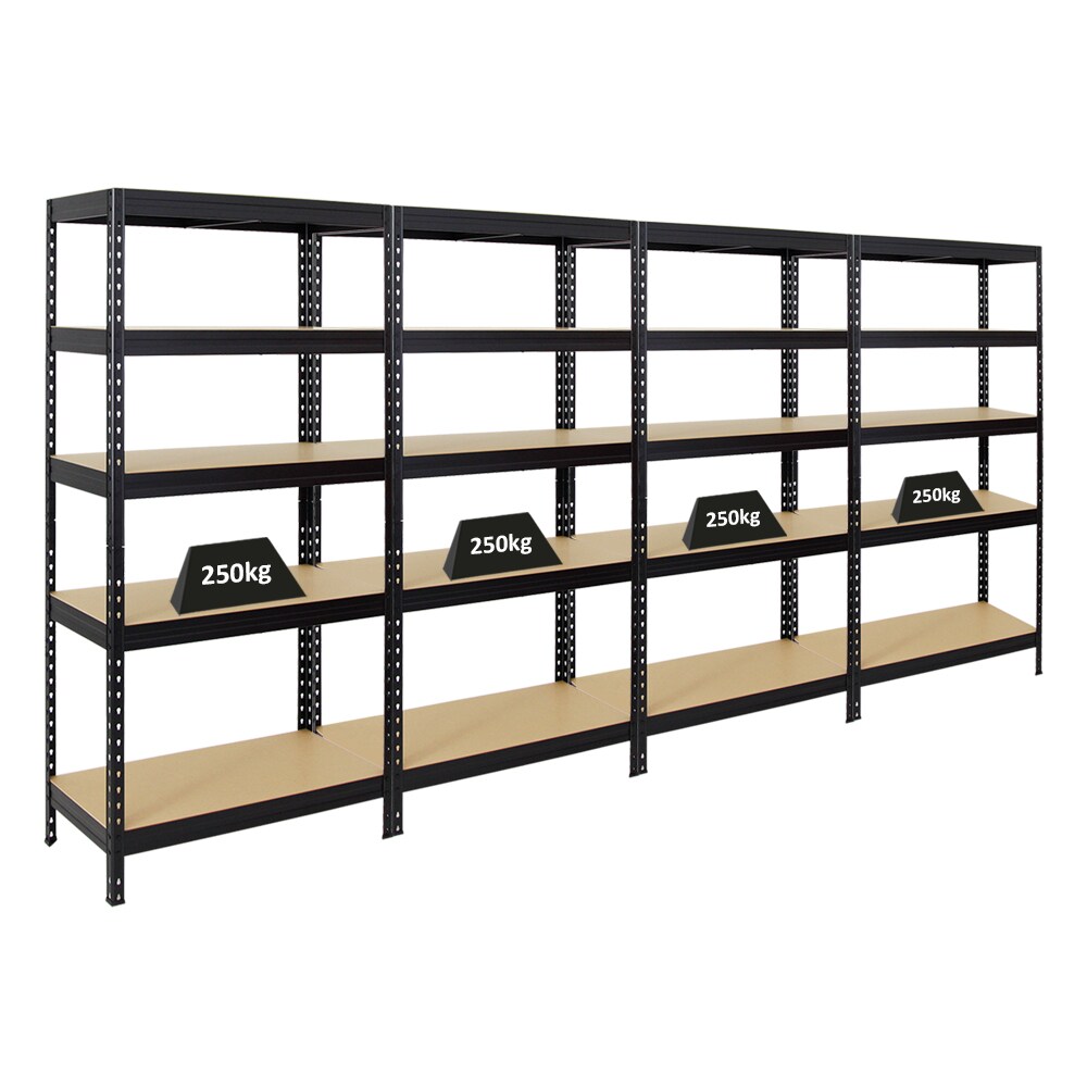 PROREGAL Mega Deal 4er-Set Schwerlastregal Rivet | HxBxT 180x90x45cm | Fachlast 250kg | Schwarz | Innovatives Stecksystem, Lagerregal, Kellerregal
