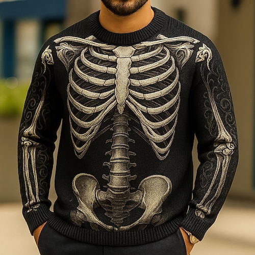 Per uomo Scheletro Maglione Maglieria Girocollo Casual Scuro Streetwear Quotidiano Festival Stampa 3D Lavoro a maglia Tenere al caldo Manica Lunga Primavera Autunno Inverno Nero Grigio