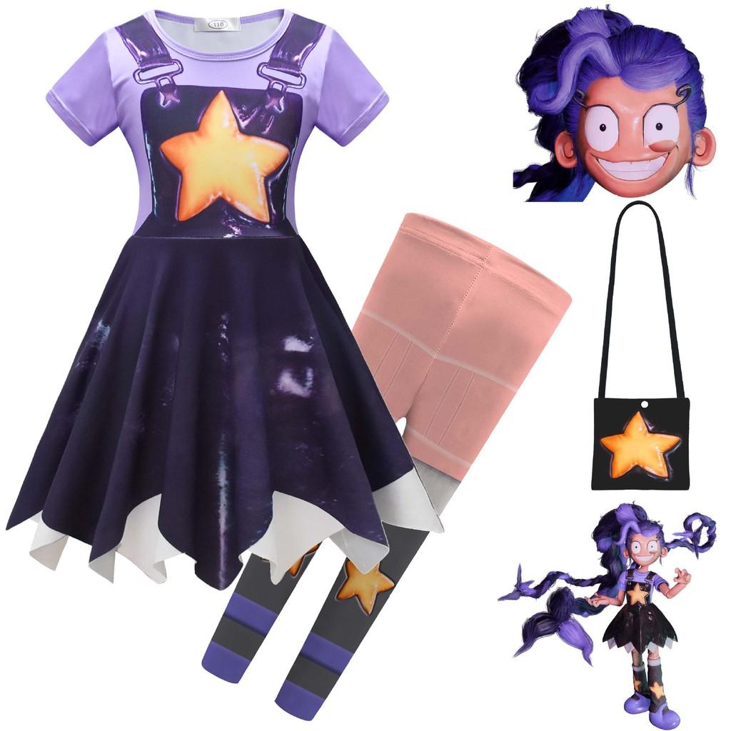 Kinderen Meisjes Lily Lovebraids Bedrukte Korte Mouwen Onregelmatige Jurk Broek Tas Sets Halloween Cosplay Kostuums 160cm paars