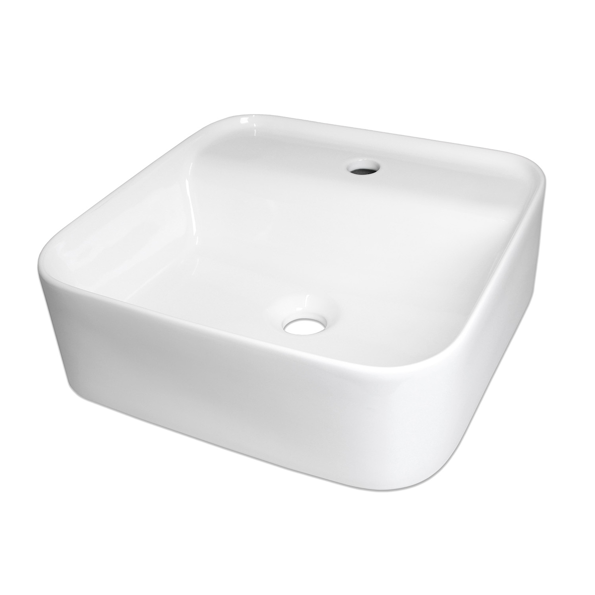 T-MAX Keramik Waschbecken Viereckig 420 x 420 x 140 mm inkl. Abflussrohr und Abflussstopfen