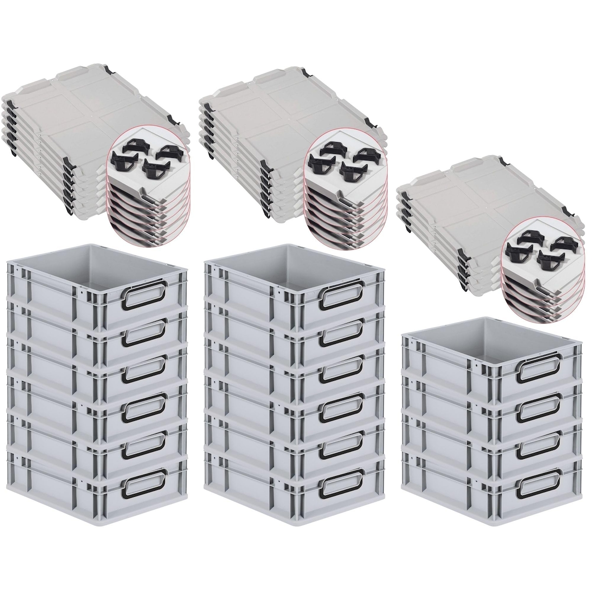 PROREGAL SuperSparSet 16x Eurobox NextGen Color mit Auflagedeckel & Verschlüsse, HxBxT 12x30x40cm, 11L, Grau, Griffe schwarz zu, Eurobehälter