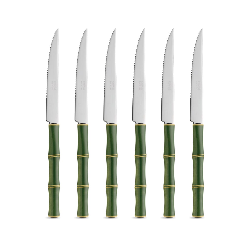 Set 6 coltelli bistecca acciaio inossidabile manico effetto bamboo
