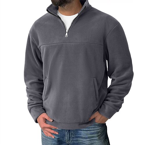 Per uomo Maglia Felpa in pile Maglione Felpa con zip corta Nero Verde militare Blu marino Cachi Grigio scuro Mezza zip Semplice Sport Outdoor Casuale Quotidiano Streetwear Essenziale Casual Autunno