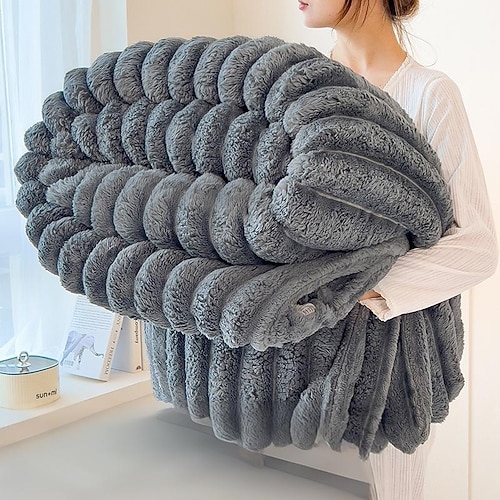 Coperta di pelliccia di coniglio di lusso in tinta unita, spessa e calda, in velluto di latte, per divano letto, ufficio, morbida e accogliente coperta di peluche per tutte le stagioni