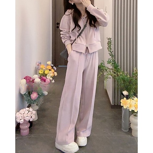 Per donna Felpa con zip Tuta da 2 pezzi Set di tute da ginnastica Coulisse Tinta unita Completo Abbigliamento Autunno Nero Rosa Escursionismo Lavoro Corsa Manica Lunga Sport Abbigliamento sportivo