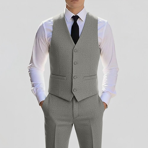 Gilet casual da uomo con revers a V, nero bordeaux, formale, tinta unita, vestibilità su misura