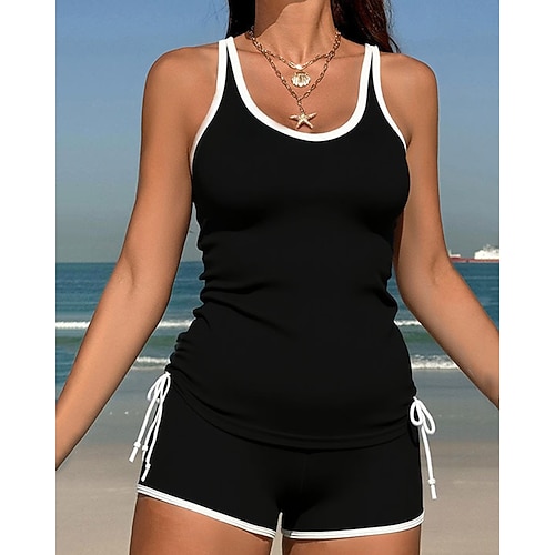 Per donna Costume da bagno Tankini 2 pezzi Tinta unita Ultra Leggero (UL) Protezione UV Elastico Senza Maniche Costume da Bagno Surf Snorkeling Estate