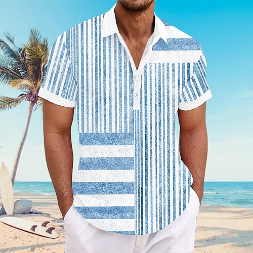 Per uomo Geometrico Camicia casual Camicia con Bottoni Manica Corta Casual Casual Casuale Estate Primavera Scollo a V Bottoni Rosa Blu Verde