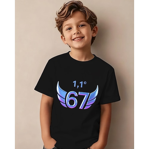 Cotone Bambini Ragazzi Nero Grafico Ali Gergo divertente 67 Maglietta Blusa Girocollo Manica Corta All'aperto Abbigliamento Quotidiano Moda Streetwear Designer Stampa Estate