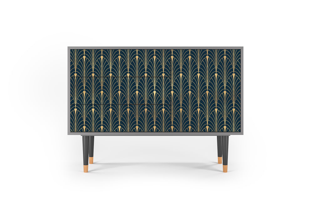 Credenza blu e gialla 3 cassetti e 1 anta L 115 cm