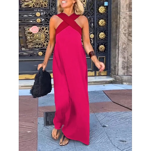 Per donna Abito maxi Abito a trapezio Abito Estivo Vestito all'americana Casual Quotidiano Vestibilità comoda Semplice Senza Maniche All'americana Nero Bianco Rosso Verde Estate