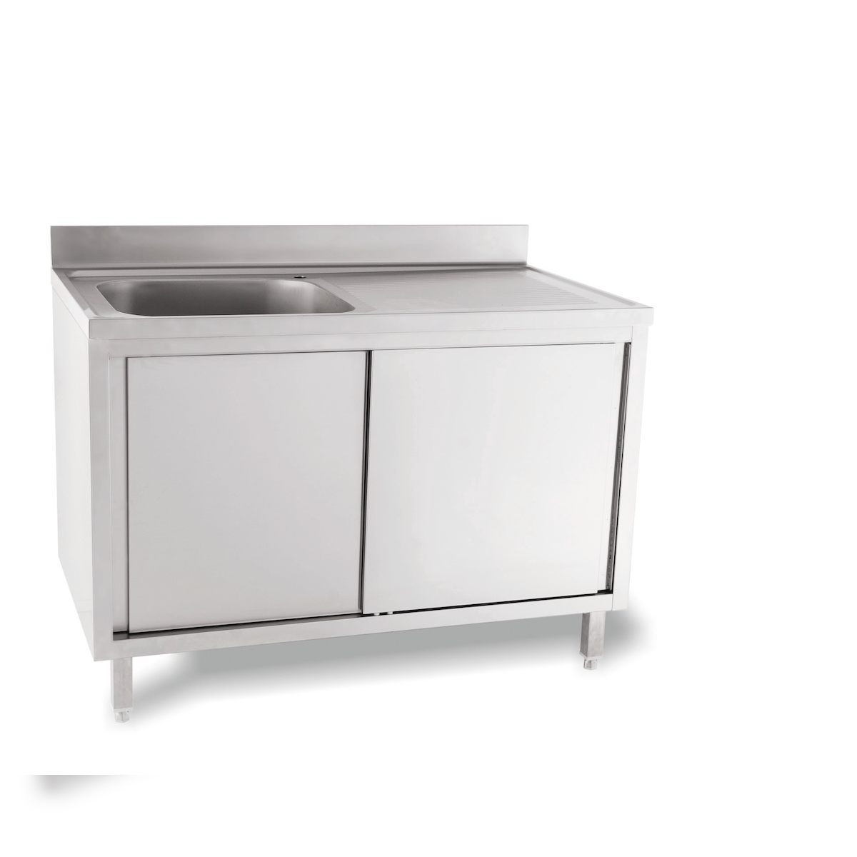 Spülschrank mit 50 mm Aufkantung mit Schiebetüren 1 Becken rechts